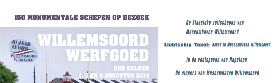 Hieronder vindt u een aantal artikelen die over Museumhaven Willemsoord zijn verschenen in de Bokkepoot het verenigingsblad van de LVBHB, het Historisch Bedrijfsvaartuig. In de voetsporen van Napoleon - nummer 211, september 2013 De klassieke zeilschepen van Museumhaven Willemsoord - nummer 212, december 2013 Lichtschip Texel: baken in Museumhaven Willemsoord - nummer 214, maart 2014 De slepers van Museumhaven Willemsoord - nummer 215, juni 2014 Onderstaande link is een artikel voor de nieuwspagina van de Schuttevaer, geschreven door Paul Schaap. |